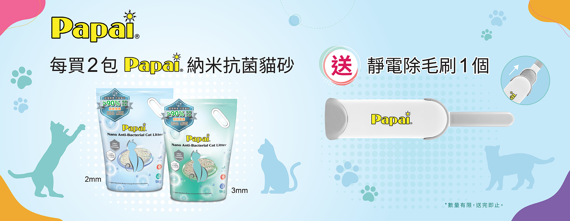 特別優惠巴派®納米抗菌貓砂 x 靜電除毛刷優惠 Posted on 01/12/202528/11/2025 by MaxiPro 每買 2 包 5kg Papai®納米抗菌貓砂 (2mm/3mm),送靜電除毛刷1個。數量有限,送完即止。 卡格單一動物蛋白乾糧突發優惠